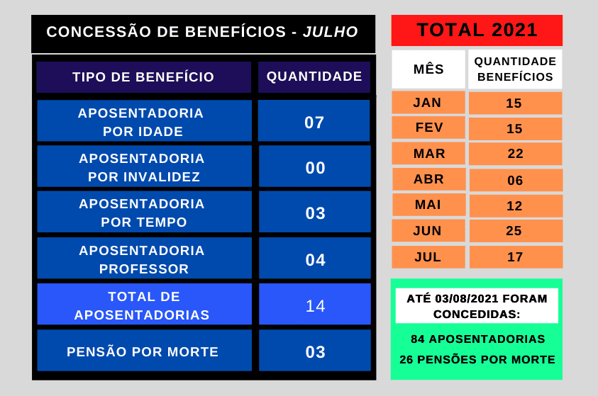 foram 84 aposentadorias e 26 pensões por morte. Só no mês de julho o IPML concedeu sete