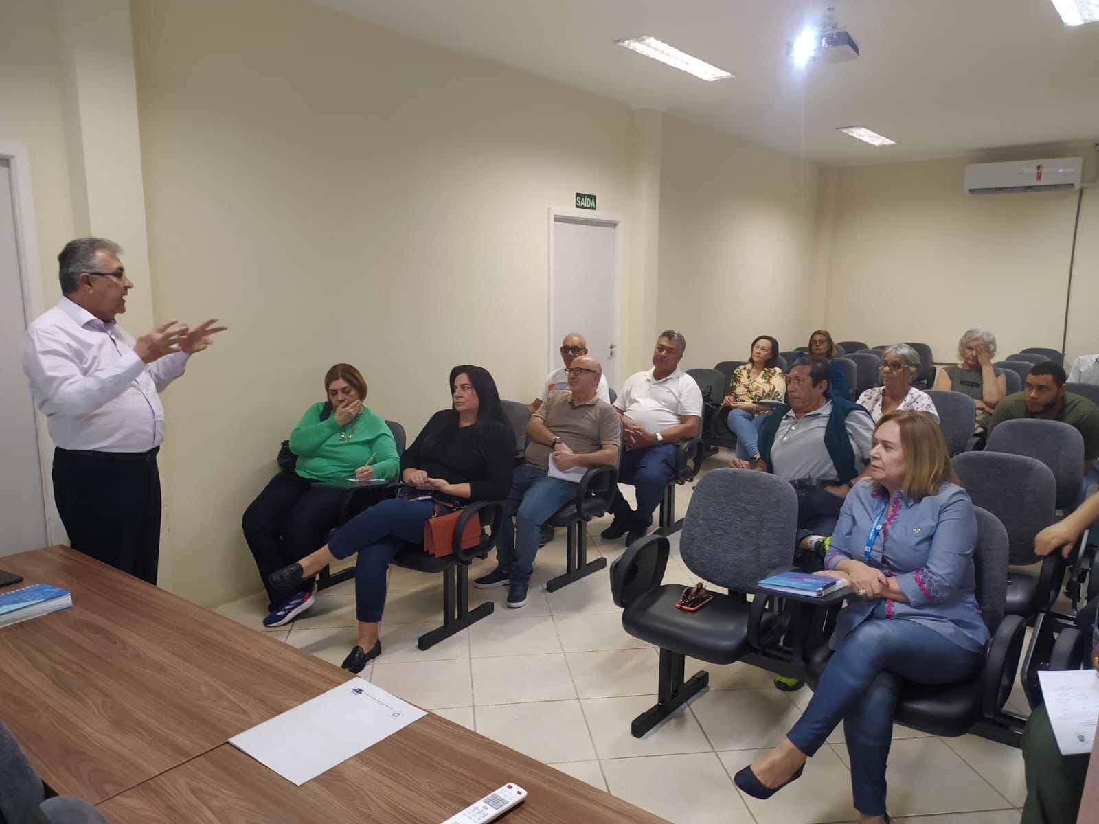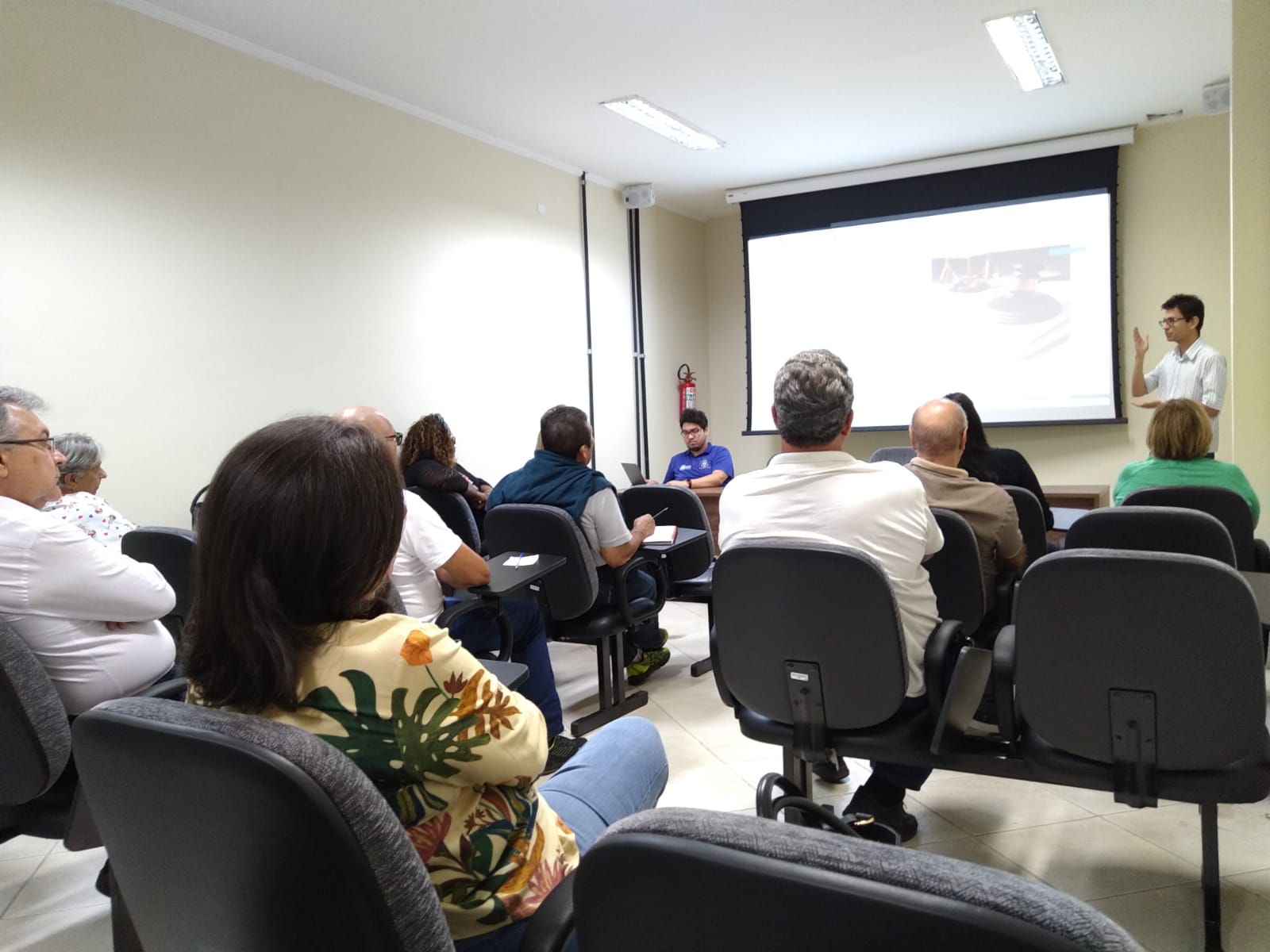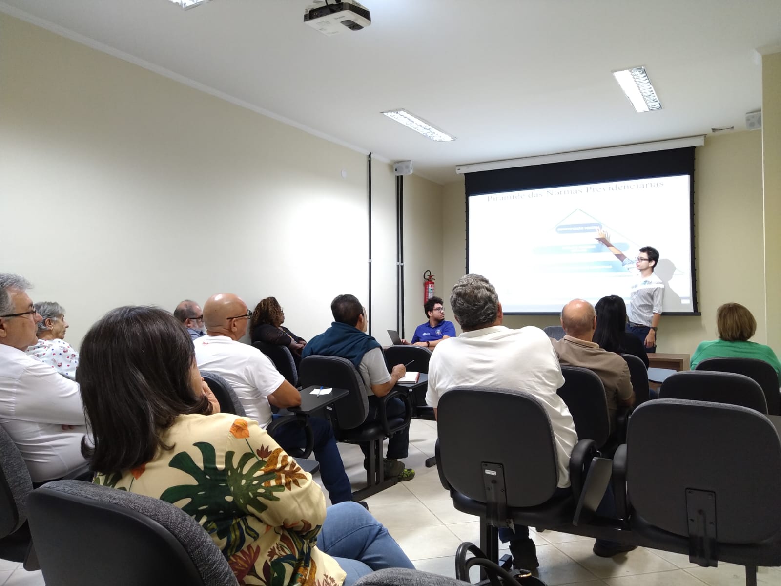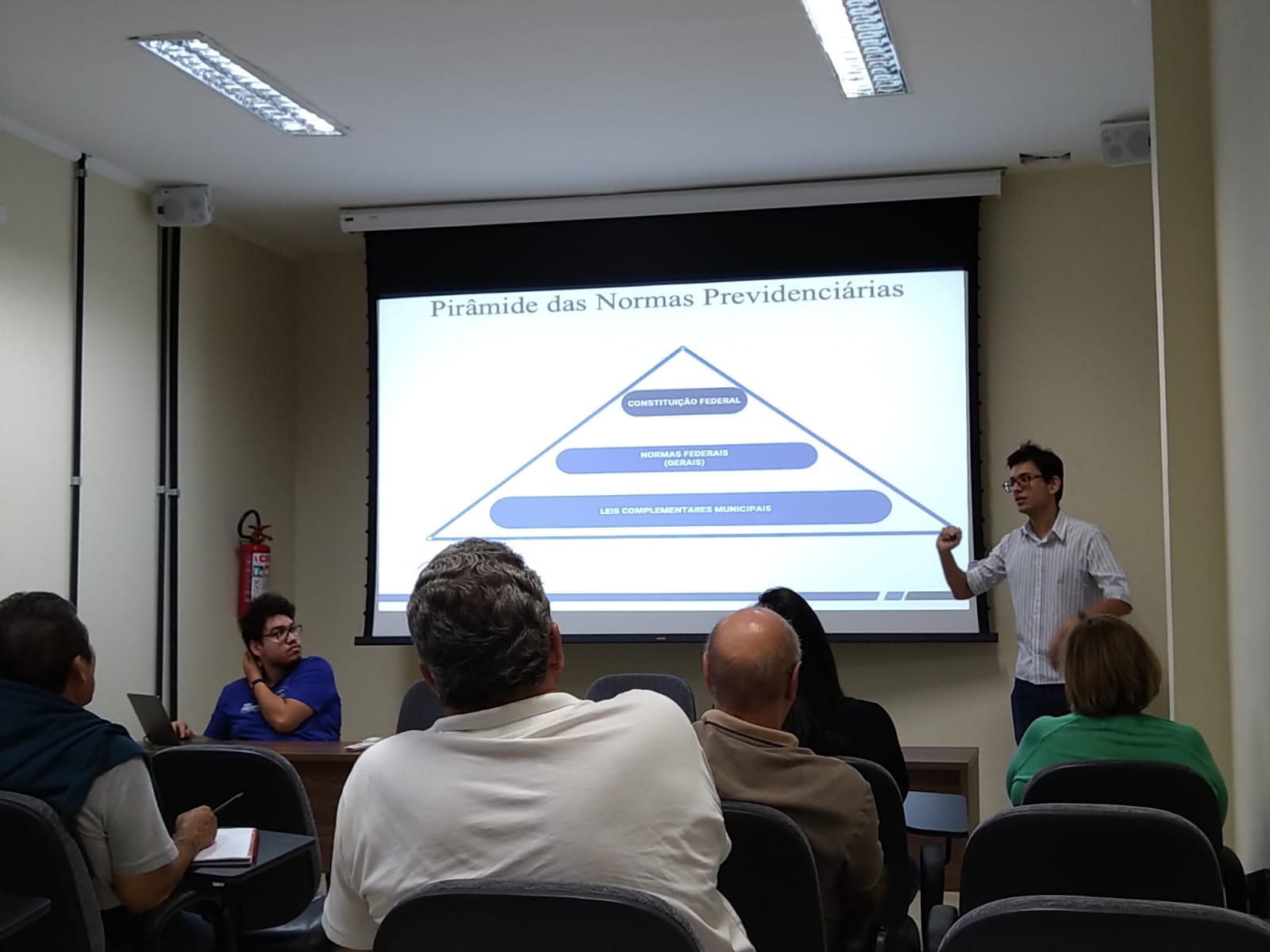 O Superintendente Edilson Merli iniciou a palestra explicando como foi a criação da Autarquia pela Lei Complementar 400/2007 e alterações posteriores, o funcionamento da estrutura hierárquica e como é a composição dos órgãos internos e suas atribuições (Conselho Administrativo, Conselho Fiscal, Comitê de Investimentos).