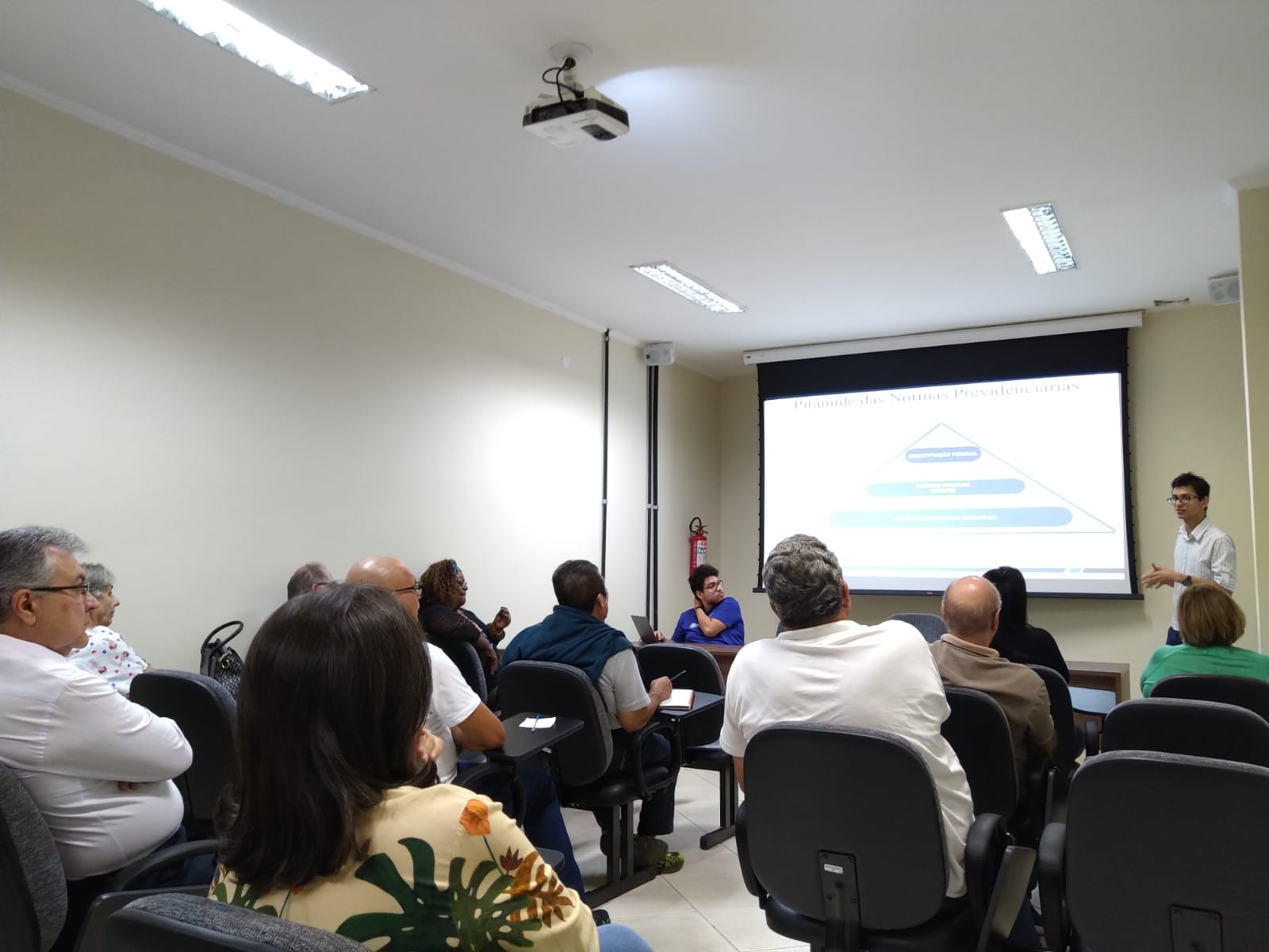 Após um breve intervalo, com a palavra o Procurador Jurídico, José Eduardo, explicou a legislação previdenciária, seu conceito, Hierarquia e aplicação, Normas do Custeio, Normas Administrativas e Normas dos Benefícios.